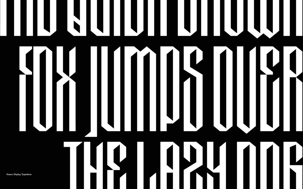 Keanu [keˈjɐnu] is a display typeface loosely inspired by west coast graffiti. From ke (“the”) + anu (“coolness”); coolness is a symbol of happiness and romance in the warm Hawaiian climate.